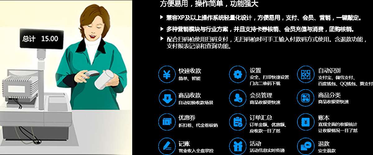 收款場景 如便利店、酒店、KTV、酒吧、賓館、大型百貨、商業(yè)綜合體等