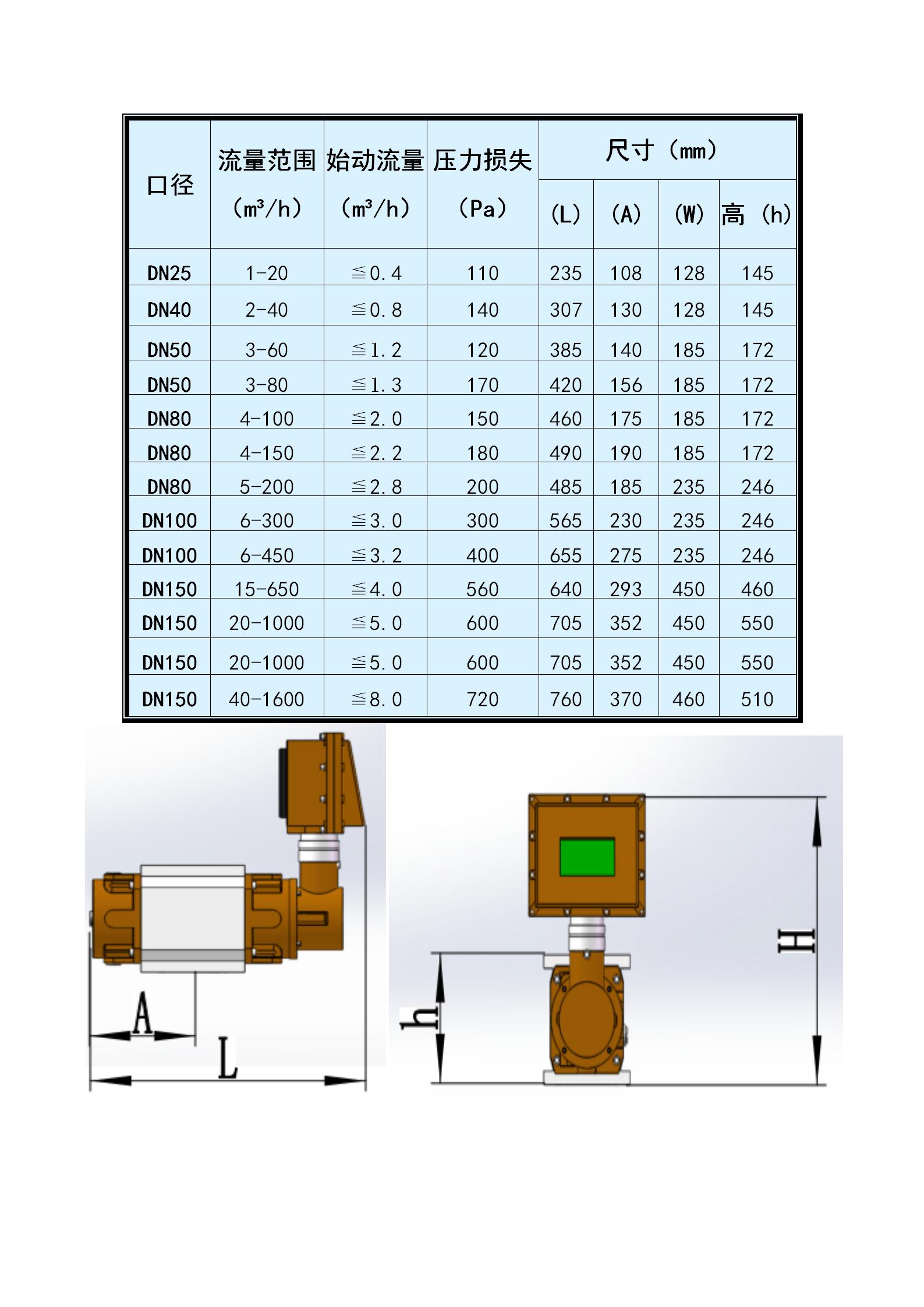 2、始動流量低,測量范圍度很寬;不同規格流量計的測量范圍度可達40:1~200:1。