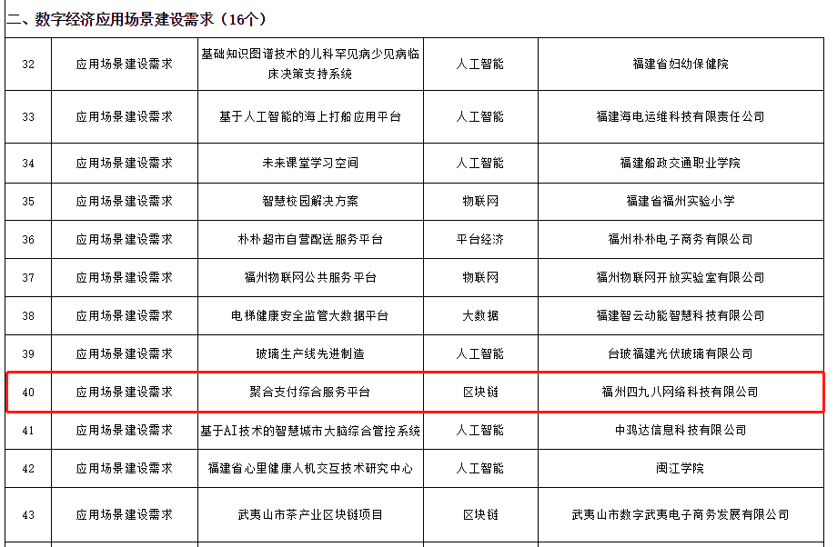 2020年10月12日,在第三屆數(shù)字中國建設(shè)峰會數(shù)字福建分論壇上,福州四九八科技憑借《聚合支付綜合服務(wù)平臺》成功入選“數(shù)字經(jīng)濟(jì)百項(xiàng)應(yīng)用場景”名單,成為“數(shù)字經(jīng)濟(jì)應(yīng)用場景建設(shè)需求”中的一員。