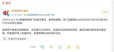 6月10日,國家互聯(lián)網(wǎng)信息辦公室指導(dǎo)北京市互聯(lián)網(wǎng)信息辦公室,約談新浪微博負(fù)責(zé)人,針對(duì)微博在蔣某輿論事件中干擾網(wǎng)上傳播秩序,以及傳播違法違規(guī)信息等問題,責(zé)令其立即整改,暫停更新微博熱搜榜一周,時(shí)間自6月10日15時(shí)至6月17日15時(shí),暫停更新熱門話題榜一周,時(shí)間自6月10日15時(shí)至6月17日15時(shí),嚴(yán)肅處理相關(guān)責(zé)任人,同時(shí),要求北京市互聯(lián)網(wǎng)信息辦公室對(duì)新浪微博依法從嚴(yán)予以罰款的行政處罰。